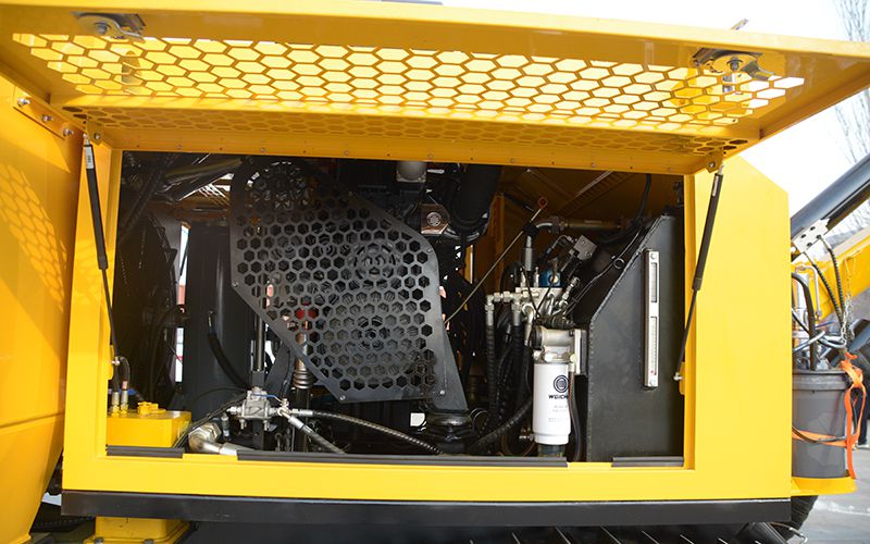 The integrated DTH drilling rig features robust automation capability and high drilling efficiency. The integrated design of the drilling rig and the air compressor addresses the challenge of travelling and remote control of air compressor, compressed air loss and high labor costs. Equipped with a high-performance hydraulic dust collector, the rig offers an environmental-friendly mining solution that meets the environmental protection requirements.